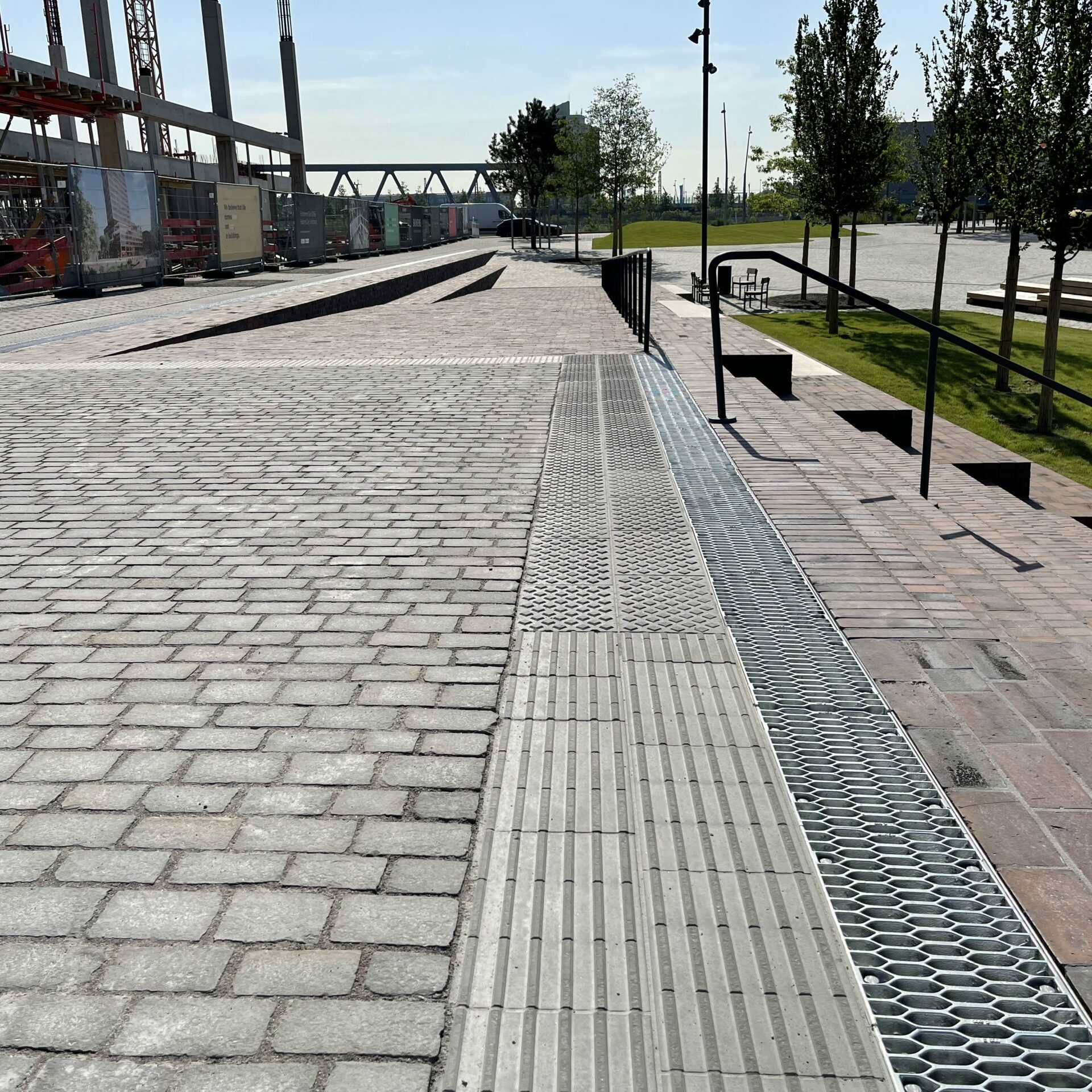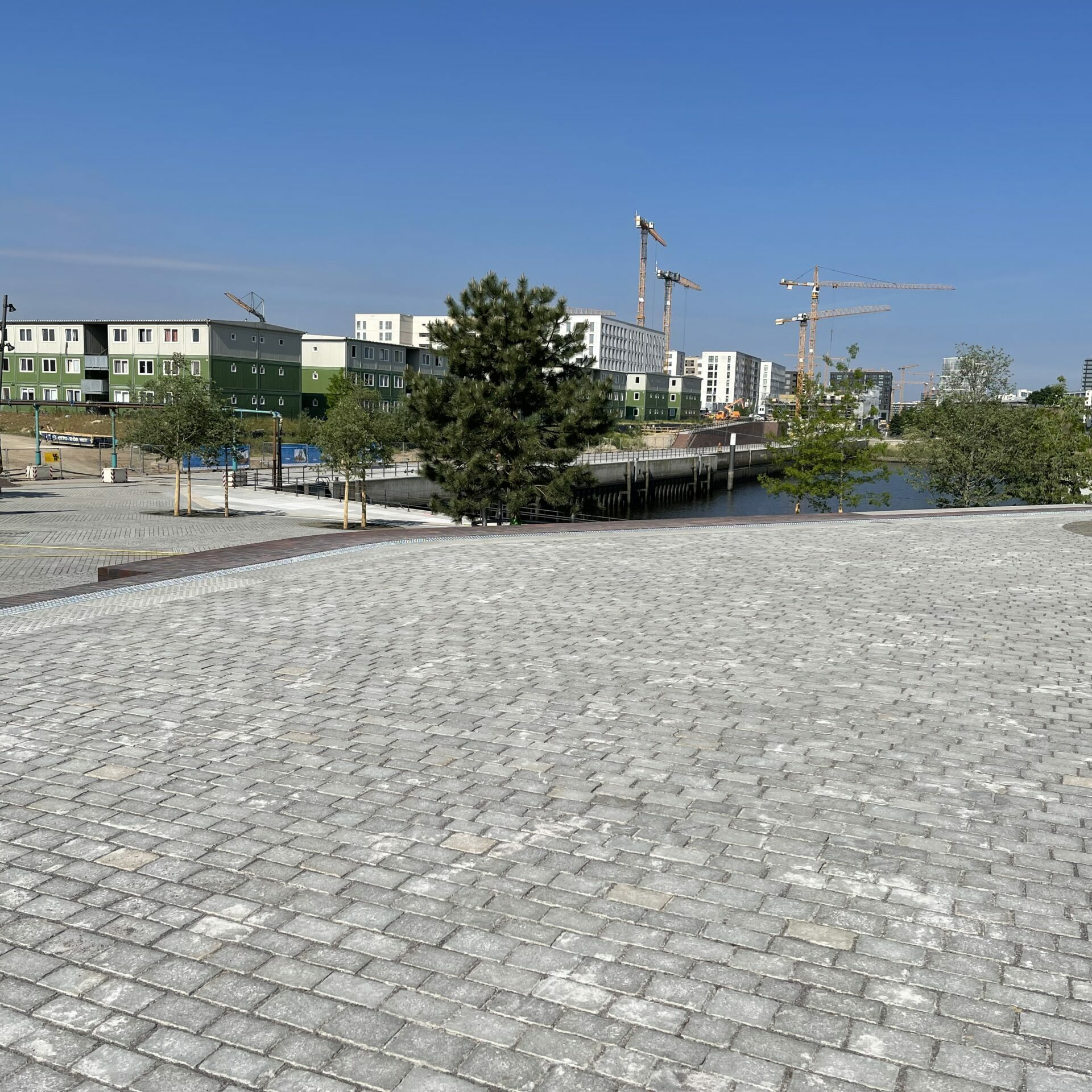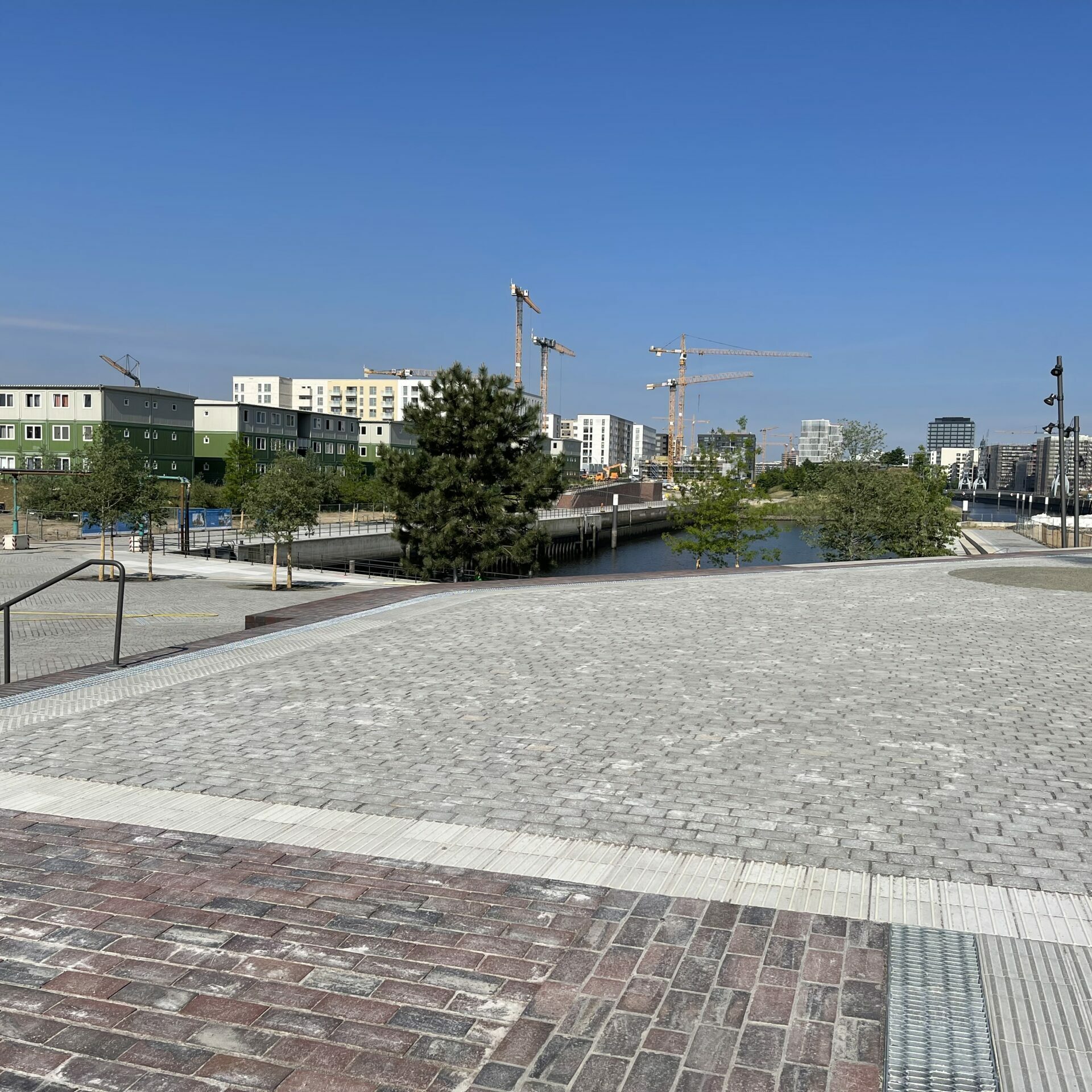 Zwischen den Elbbrücken und dem Kopfende des Baakenhafens lädt der über 10.000 Quadratmeter große Amerigo-Vespucci-Platz zum Verweilen und Entspannen ein. Als in Hamburg ansäßiger Natursteingroßhändler und Importeur sind wir stolz darauf, einen Teil zur Fertigstellung dieses beeindruckenden Platzes beigetragen zu haben.