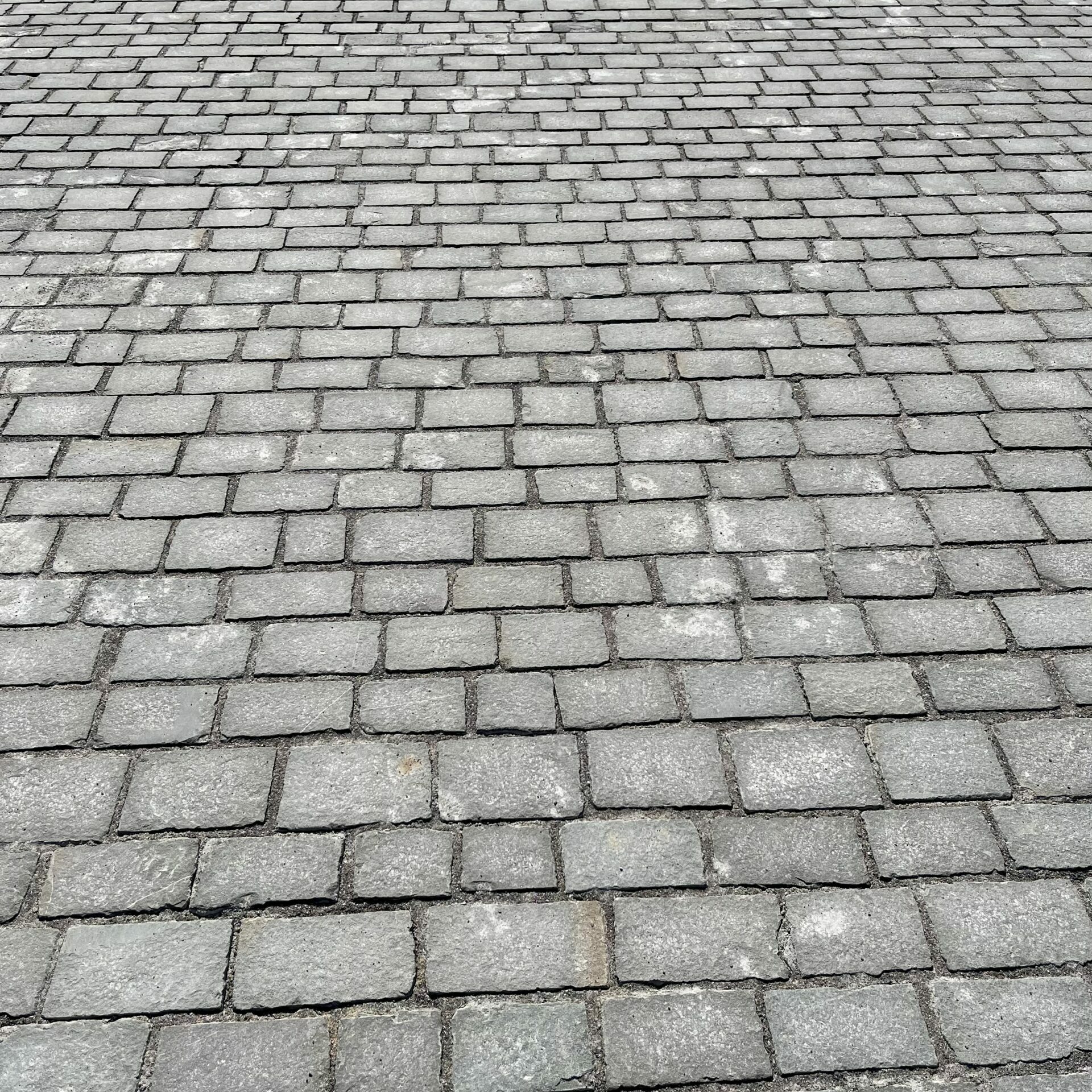 1850 qm Grauwacke Reihenpflaster mit gesägt und geflammter Oberfläche