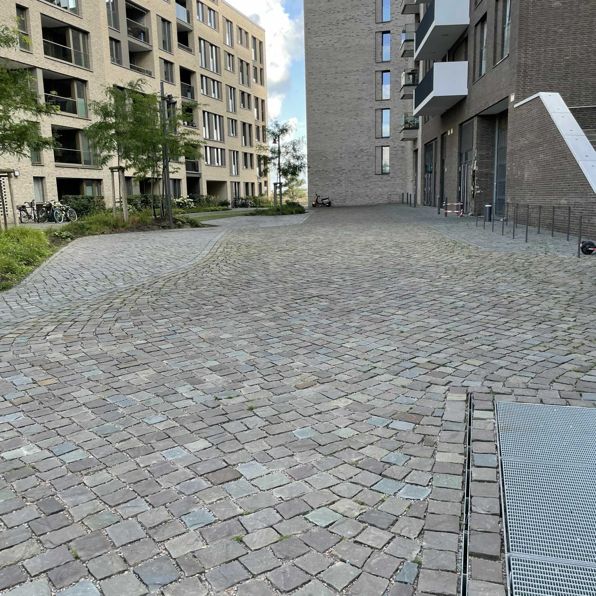 Für die moderne Wohnanlage am Baakenhafen, Baufeld 91+93 in der Hamburger HafenCity, haben wir rund 700 m² bergische Grauwacke als gespaltenes Großpflaster geliefert. Dieses Natursteinpflaster spielt eine zentrale Rolle in der Gestaltung der Außenanlagen – Wege, Plätze und Aufenthaltsflächen profitieren von der robusten, hochwertigen Oberfläche und fügen sich ästhetisch in das urbane Quartier ein.
