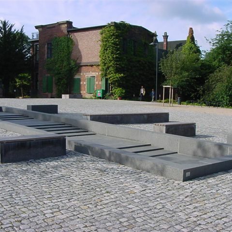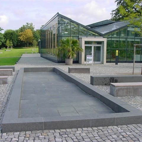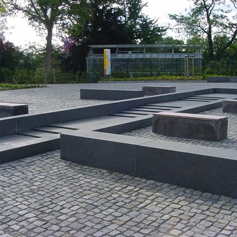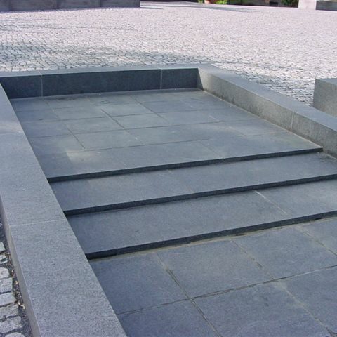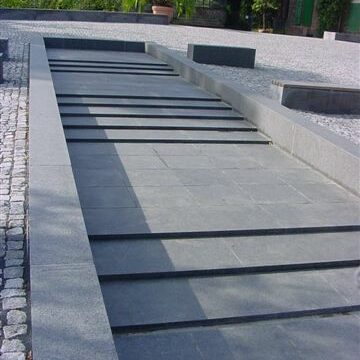 Zum Einsatz kamen rund 1.700 m² historisch gebrauchtes Granit-Kleinpflaster in grau, das durch seine authentische Optik perfekt in das denkmalgeschützte Umfeld integriert wurde. Ergänzt wurde das Naturstein-Sortiment durch Massivelemente und Sonderanfertigungen aus Basalt MANDO, die sowohl gestalterischen als auch funktionalen Anforderungen gerecht werden. Zudem lieferten wir Bodenplatten aus Basalt MANDO, die speziell für die Wasseranlage „Wassertreppe“ konzipiert wurden.