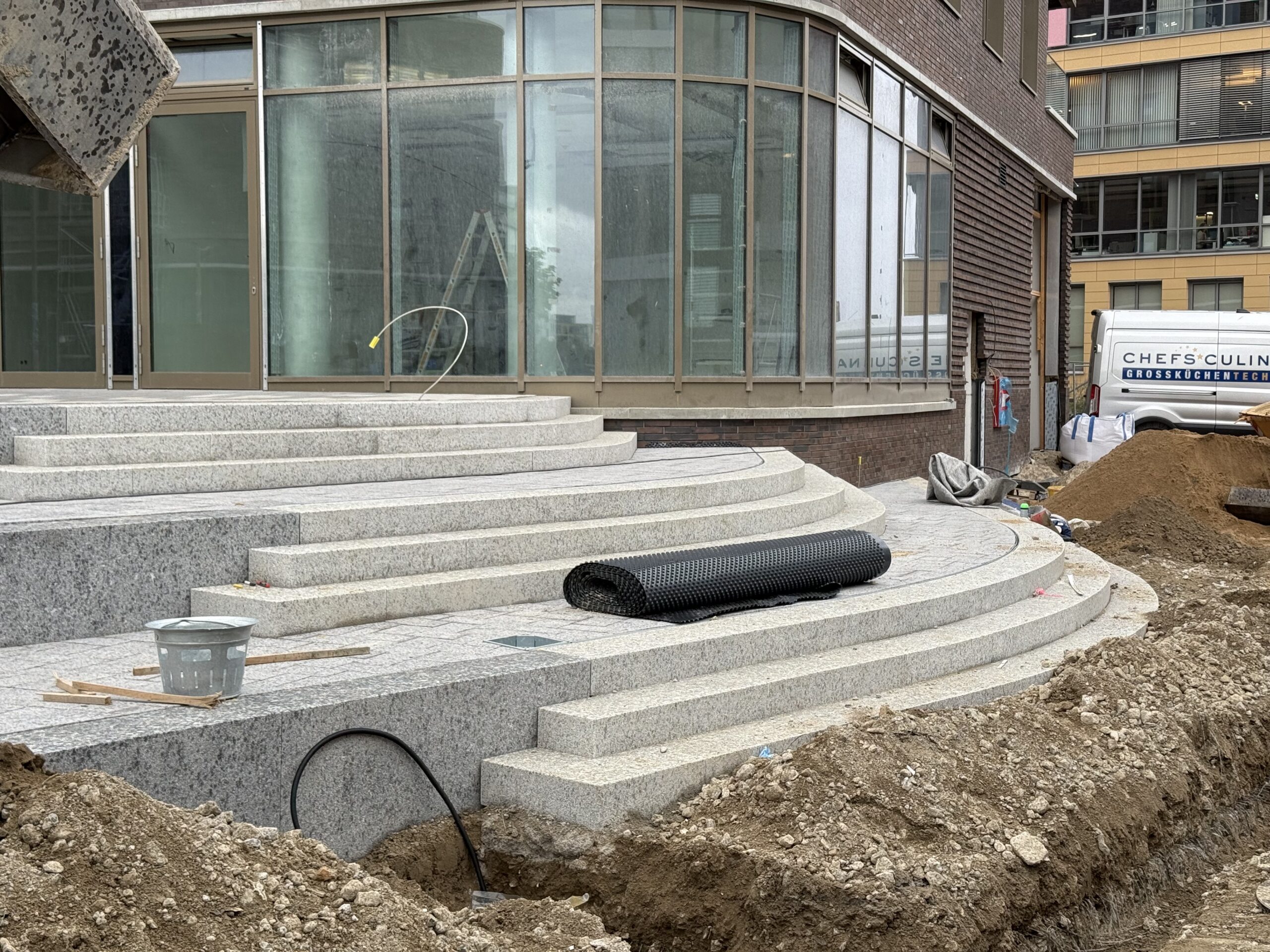Aktuell begleiten wir ein spannendes Bauvorhaben in Rostock, Am Strande, für das wir als Natursteinhändler und Importeur hochwertige Granitprodukte liefern. Der Eingangsbereich befindet sich derzeit noch im Bau – dennoch möchten wir Ihnen bereits einen Einblick in diese Referenz geben.