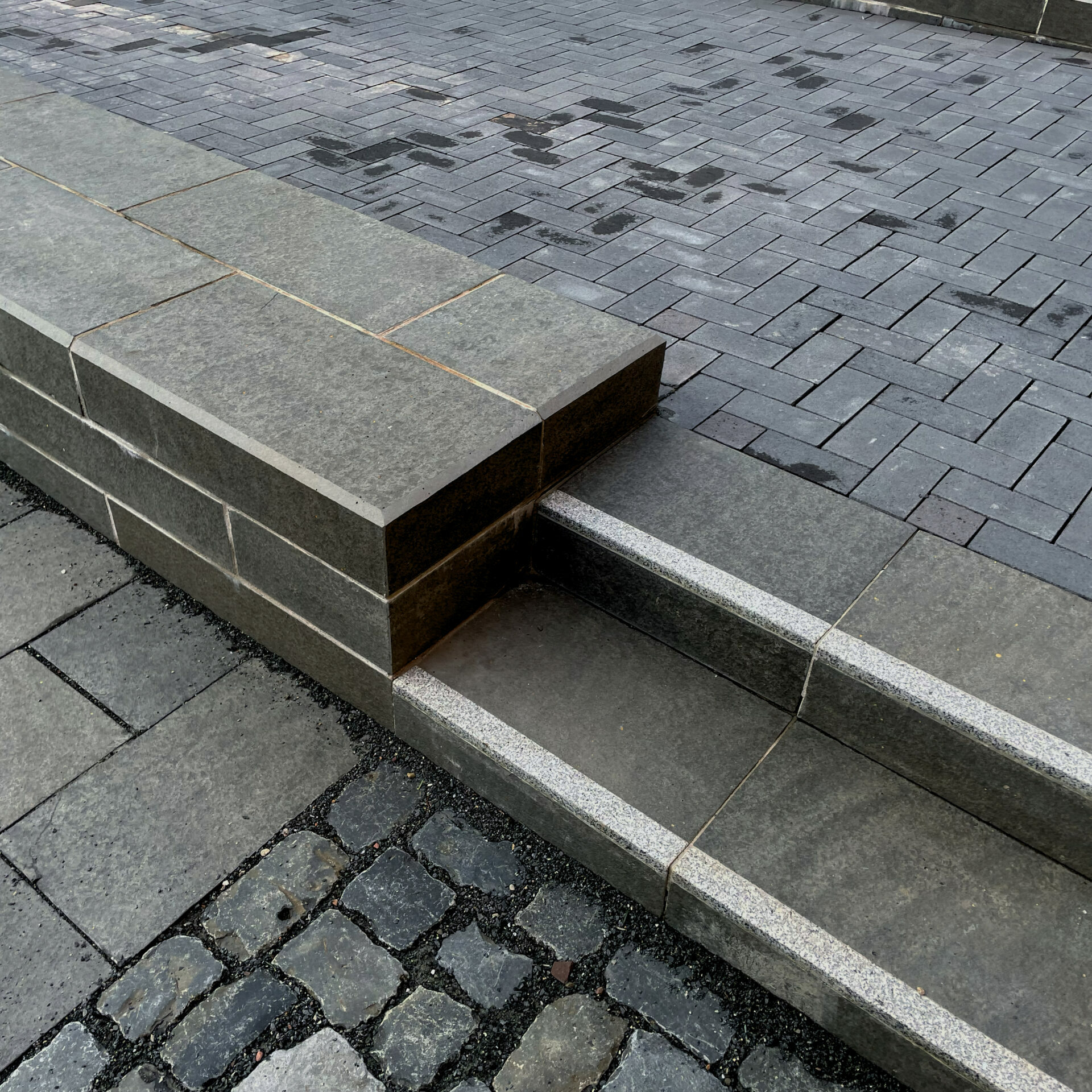 diverse Blockstufen aus Basalt mit Kontraststreifen
