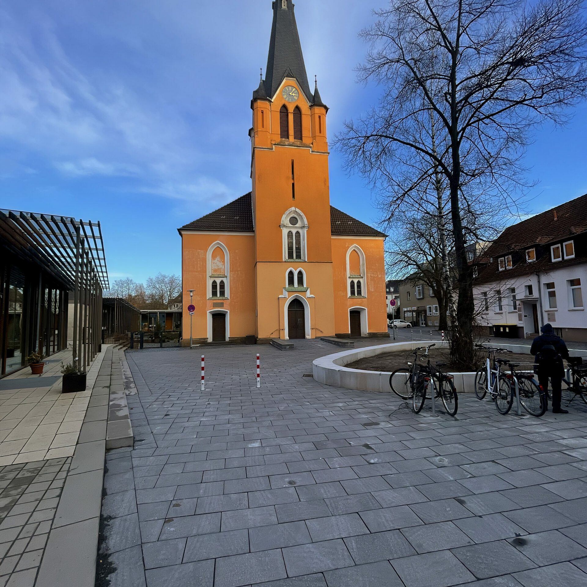 Der Straßenzug und Kirchenvorplatz erhielt eine barrierefreie Neugestaltung durch die Aufnahme des alten Kopfsteinpflasters, welches teilweise zur Wiederverwendung kam oder durch neue Basaltpflasterplatten ausgetauscht wurde. Übriges Kopfsteinpflaster wurde von uns abgefahren und findet in zukünftigen Projekten seine Wiederverwendung. Die Zuwegung der Ev.-luth. Kirchengemeinde wurde mit einer barrierefreien Rampe versehen, die nicht nur funktionell, sondern auch ästhetisch ansprechend ist. Abgrenzende Mauerblöcke und seitliche Blockstufen mit eingeklebten Kontraststreifen aus hellgrauem Granit setzen nicht nur gestalterische Akzente, sondern dienen auch der Orientierung und Sicherheit. Diese Maßnahmen tragen dazu bei, die Kirchengemeinde für alle Besucher zugänglich und einladend zu gestalten.