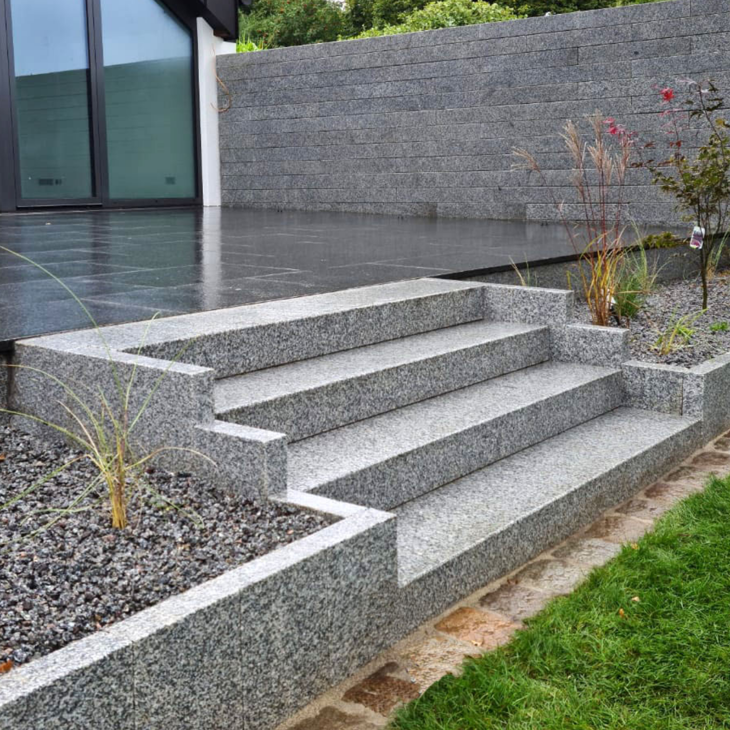 Unsere Mauersteine der Serie Premium zeichnen sich durch ihre allseits gesägte Form aus, die eine besonders präzise und saubere Verarbeitung ermöglicht. Die Sichtseiten dieser Mauersteine sind durch verschiedene Bearbeitungen wie z. B. flammen, strahlen oder polieren veredelt, wodurch sie eine edle und filigrane Oberfläche erhalten.